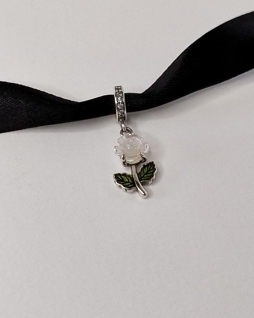 Berloque modelo rosa na Prata envelhecida.
